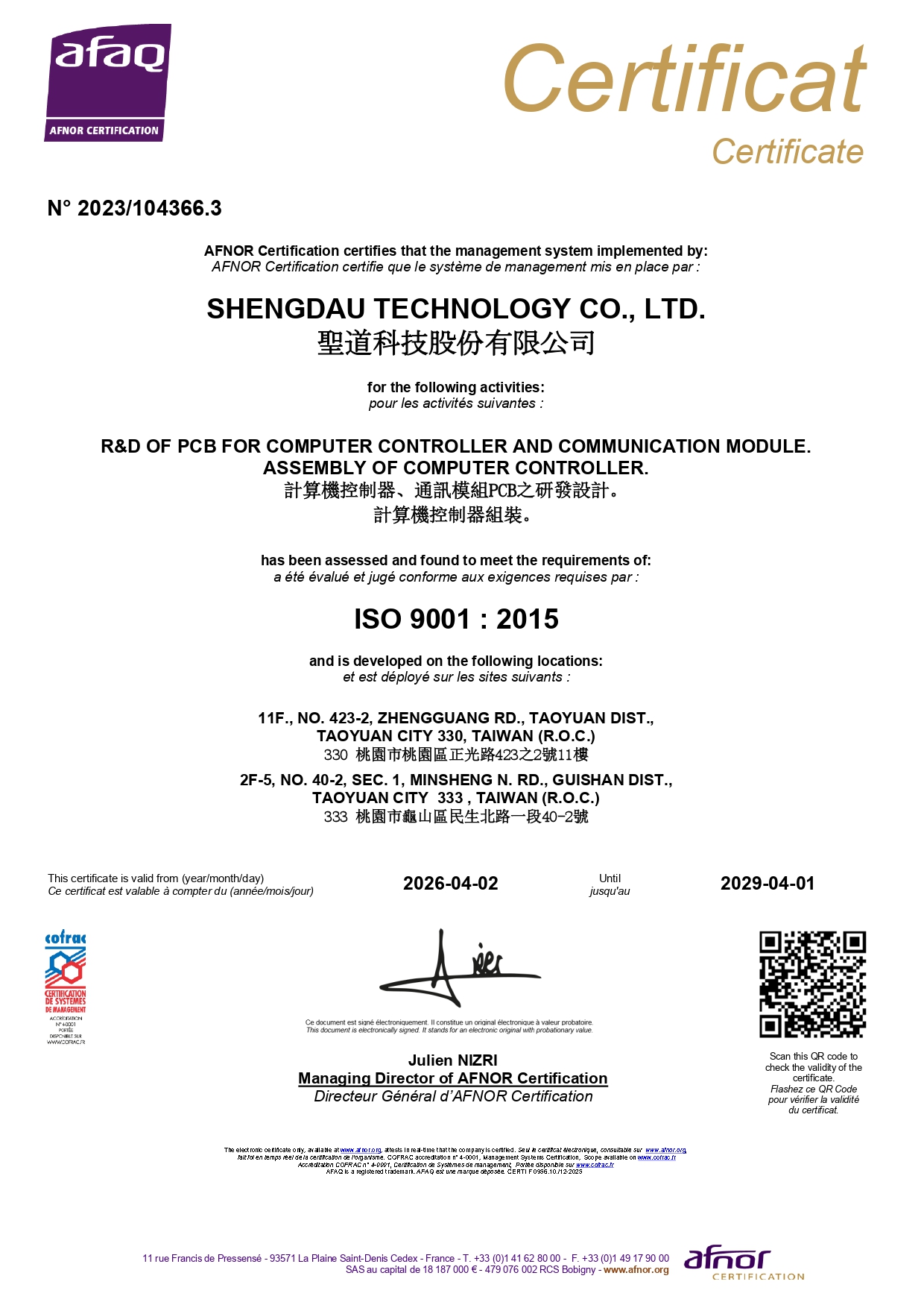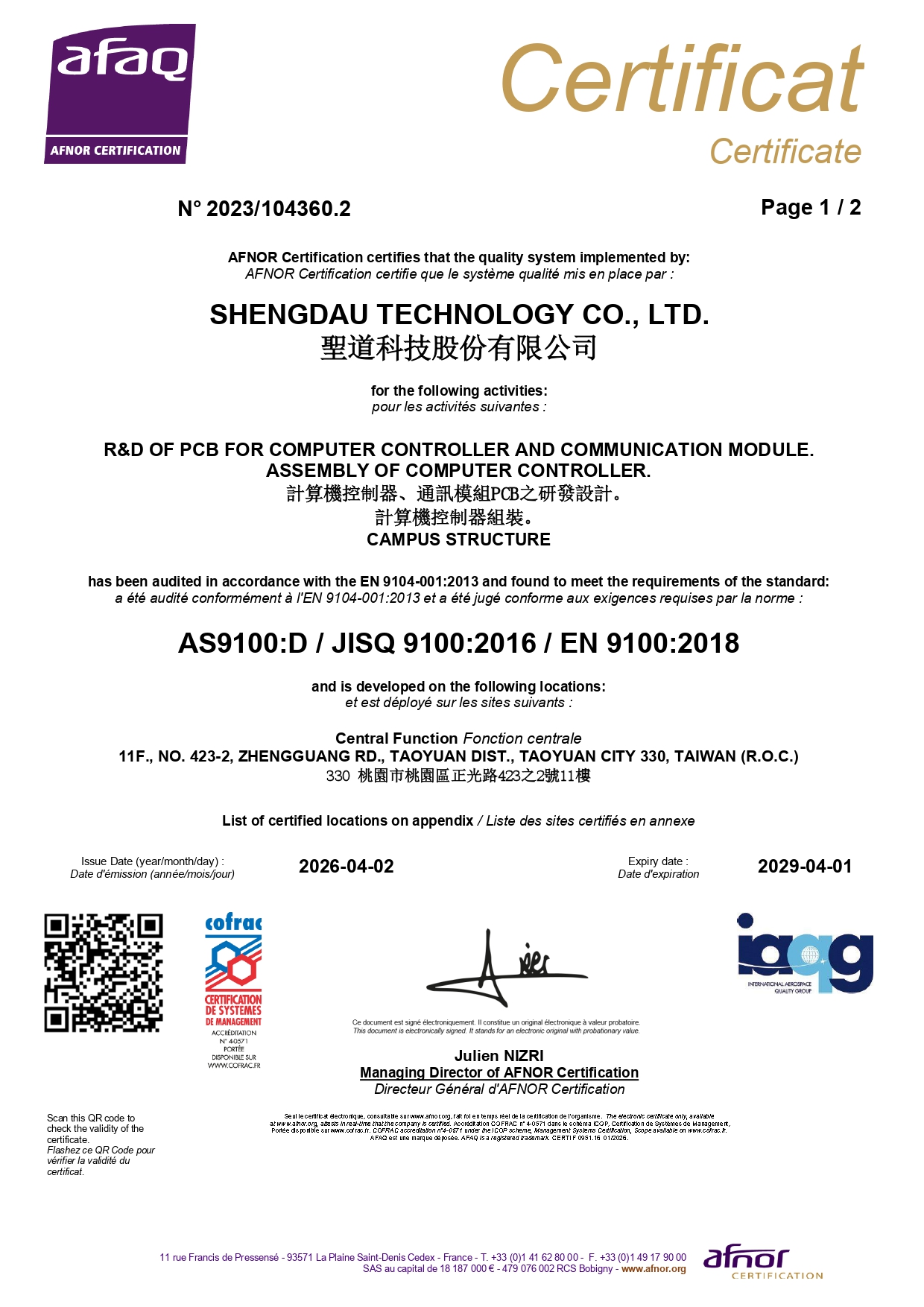 認證證書